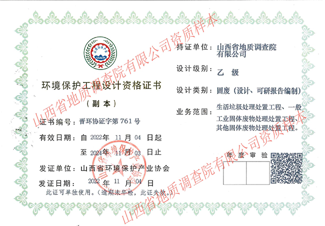 環境保護工程研究院2023年成立以來,承擔了太原市主城區區域地質災害危險性評估、山西省陽曲縣地質災害“隱患點+風險區”雙控建設項目、山西省武鄉縣、沁源縣地質災害“隱患點+風險區”雙控建設項目、山西省地質災害氣象風險短臨預警模型研究、山西省汾河中上游山水林田湖草生態保護修復工程試點太原市萬柏林區西山九院小虎峪生態保護修復(地質災害治理)項目監測、山西省汾河中上游山水林田湖草生態保護修復工程試點太原市萬柏林區玉門河生態保護修復(地質災害治理)項目監測、嵐縣太興鐵路社科集運站鐵路專用線工程項目節約集約用地論證分析專章等項目。